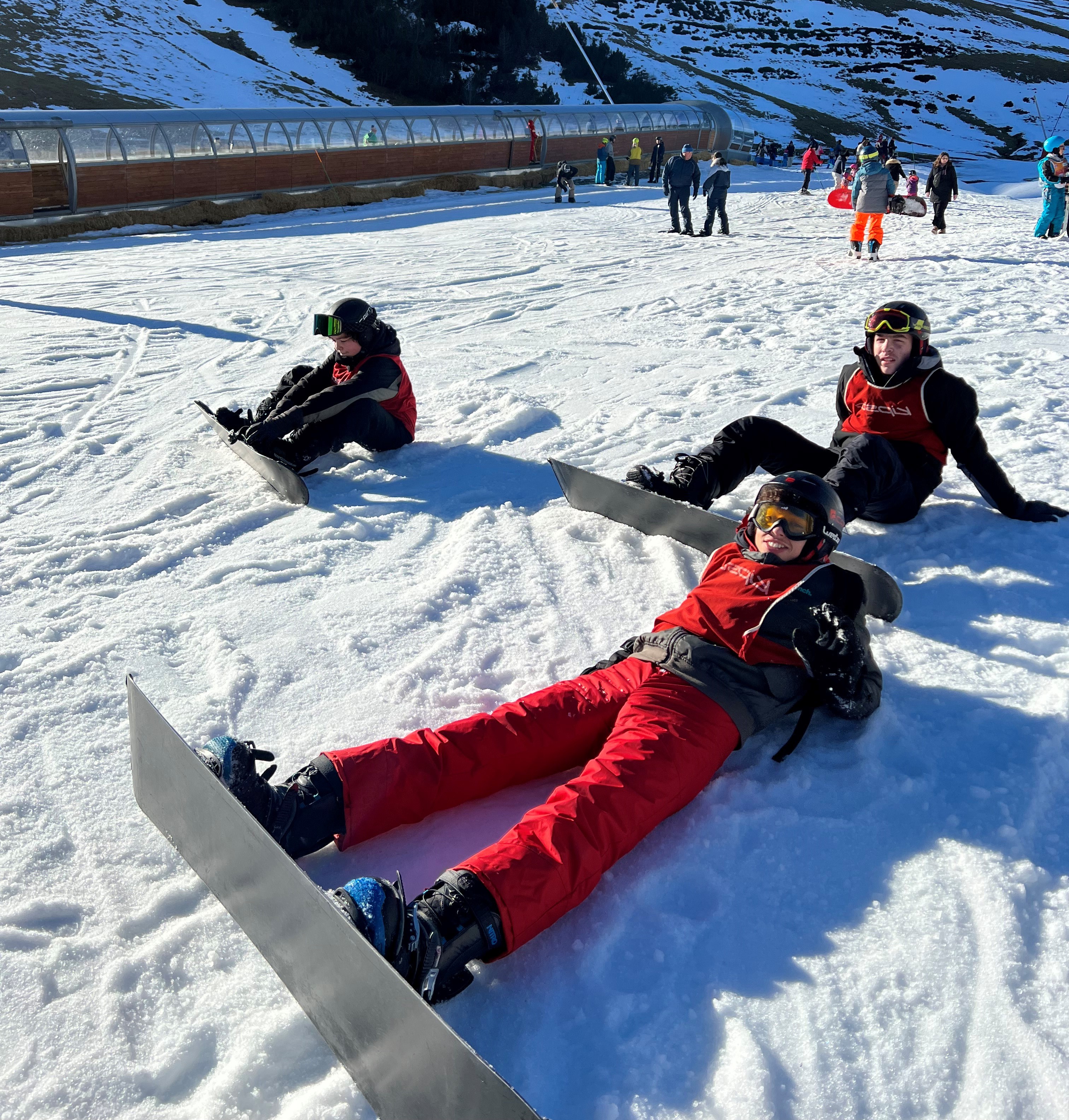 Snowboard : pour débutant ou confirmé. 5 h/ jour encadrées par notre équipe d’animateurs qualifiés. Acquisition des techniques de base et perfectionnement sous forme ludique. Le nombre d’heures de surf dépendra de la fatigue des participants et des conditions météorologiques. Une journée de détente en milieu de séjour sera proposée (sorties en raquettes, création d’igloo...). Pas d’activité surf les jours d’arrivée et de retour.